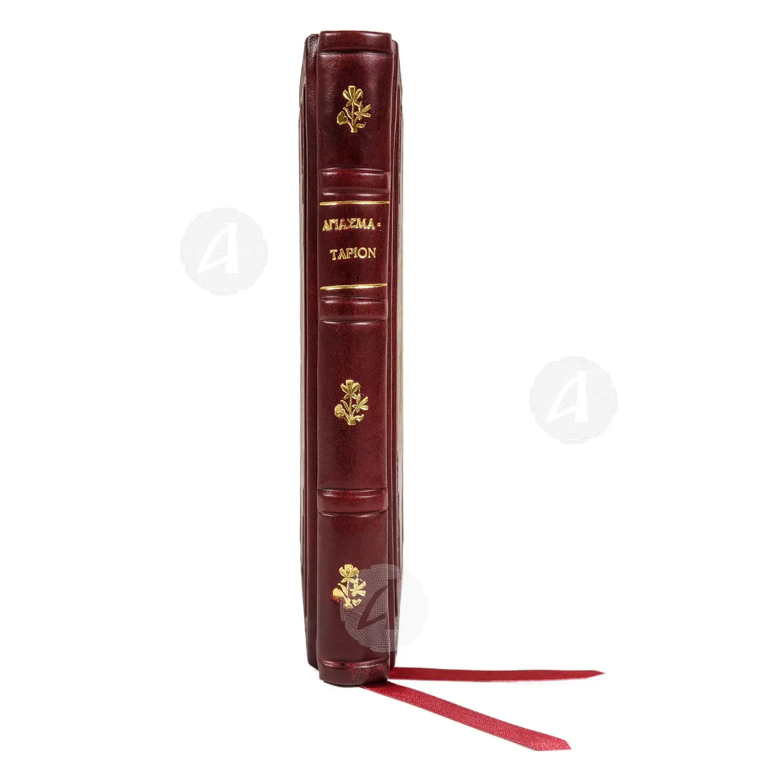 Χειροποίητη βιβλιοδεσία με δέρμα και γράμματα από φύλλο χρυσού αγιογραφίας 24 καρατίων.
