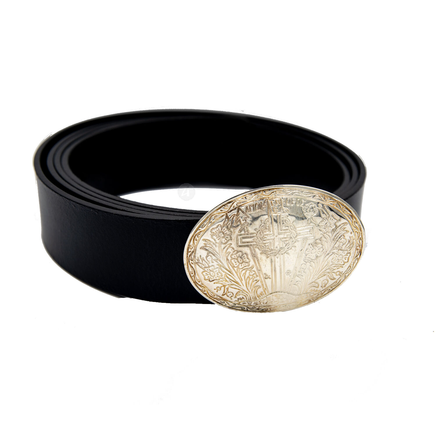 Athonian handicrafted leather priestly belt with silver 925° buckle.
