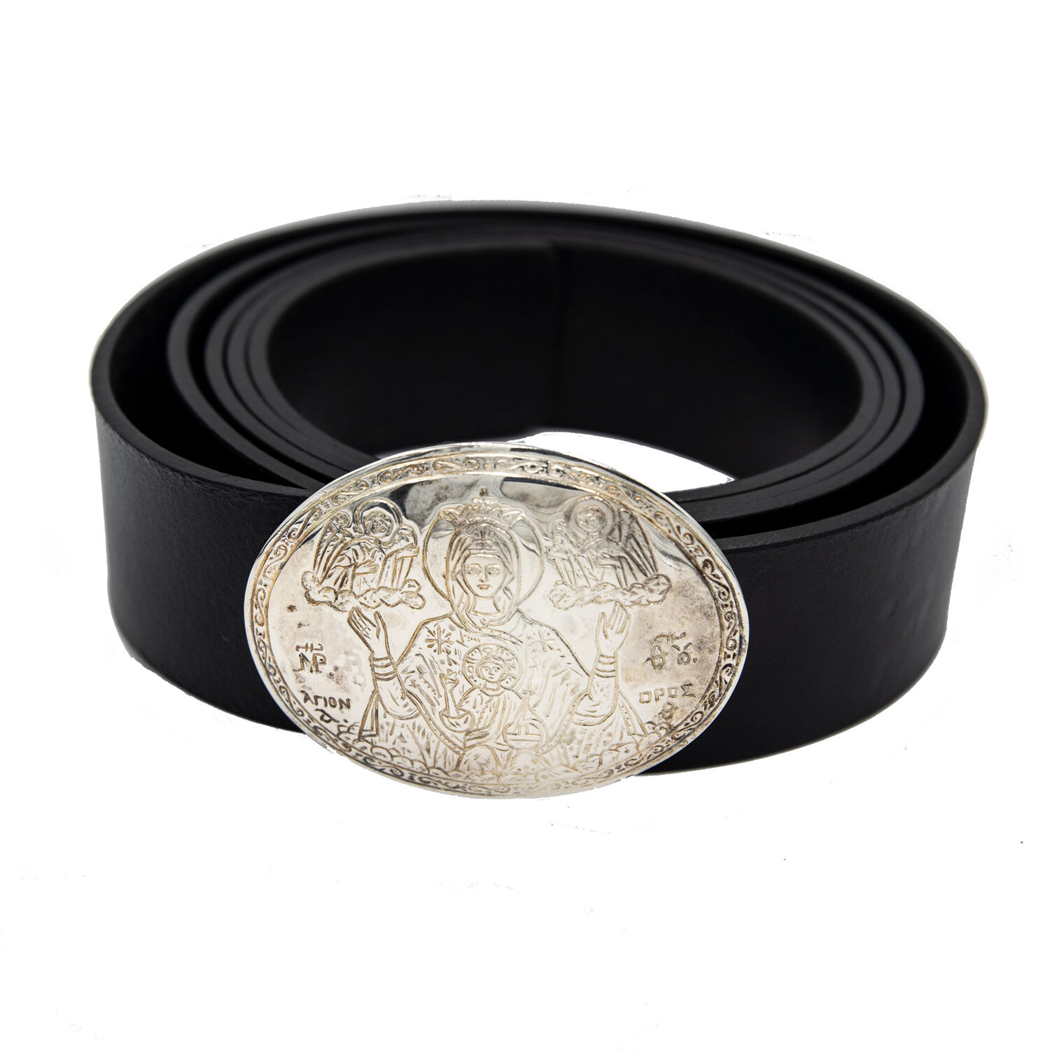 Αγιορείτικη Δερμάτινη Ιερατική Ζώνη Παναγία