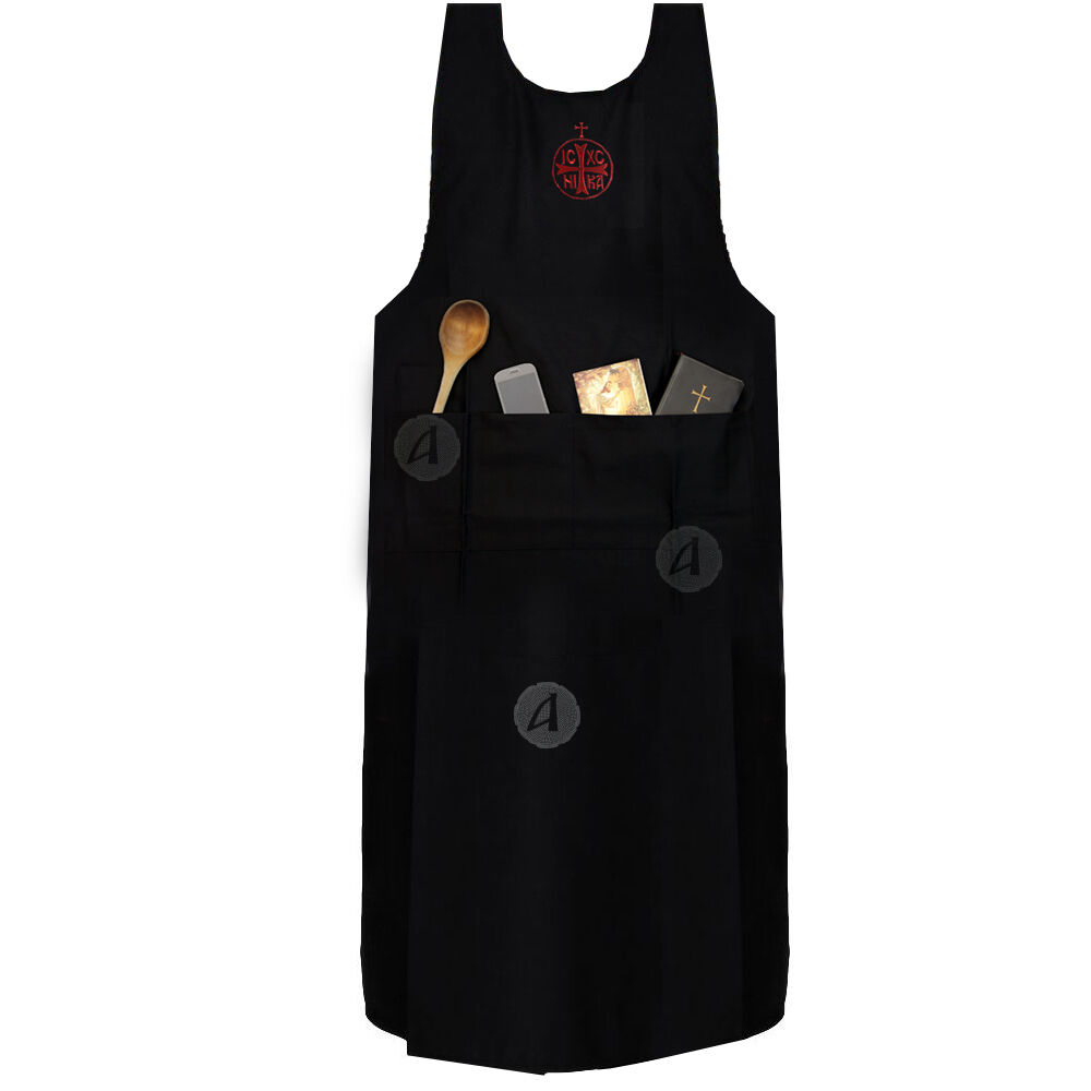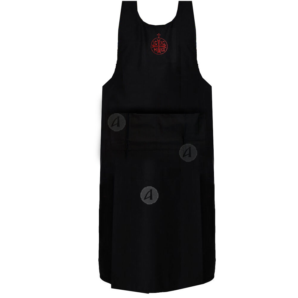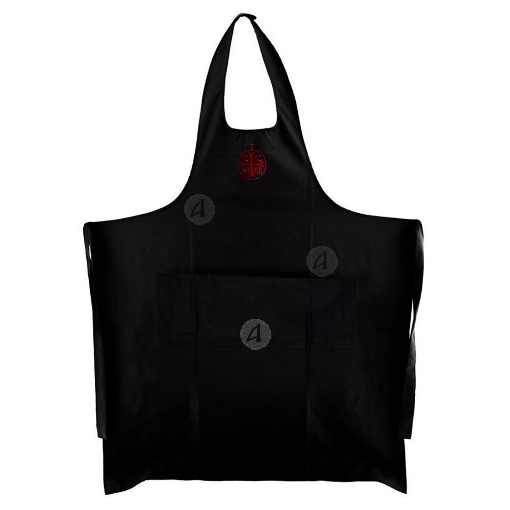 Χειροποίητη Διακονική ποδιά (Μαγειρέματος-εργασίας) Αγίου Όρους με κέντημα του ΙΣ.ΧΣ.ΝΙ.ΚΑ και μεγάλη τσέπη τριών θέσεων.