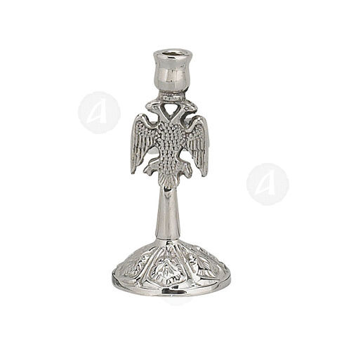 Orthodox nickel plated candlestick (candle holder) from Mount Athos with Double-headed Eagle.