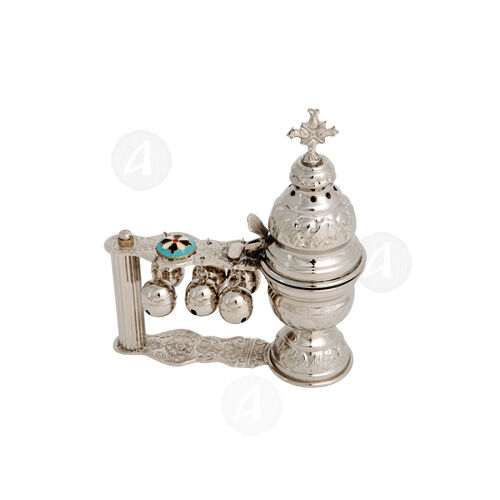 Orthodox katzion censer nickel plated with engraved decoration suitable for Holy Week.