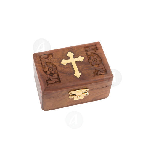 Wooden incense box with bronze cross on the top. Dimensions: Length: 8.00cm Width : 5.00cm