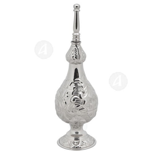 Orthodox nickel plated sprinkler (myrrh oil pot) with carved decoration.