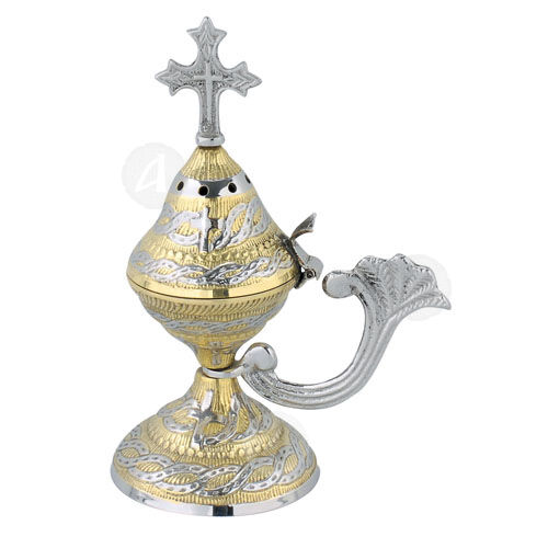 Mount Athos carved two-coloured (brass & nickel-plated) home censer.