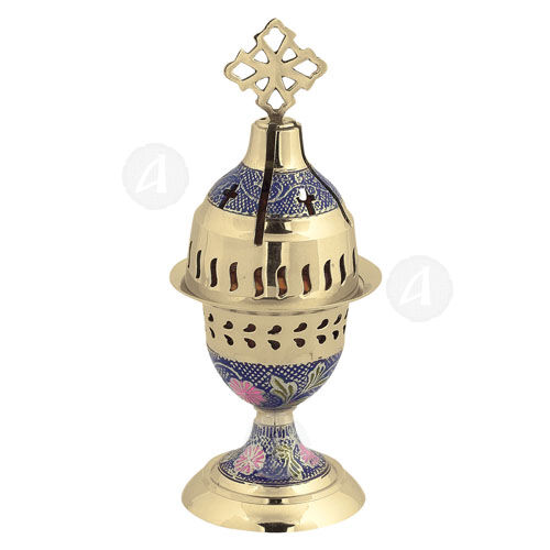 Mount Athos home standing vigil oil lamp with enamel coating in purple color.
