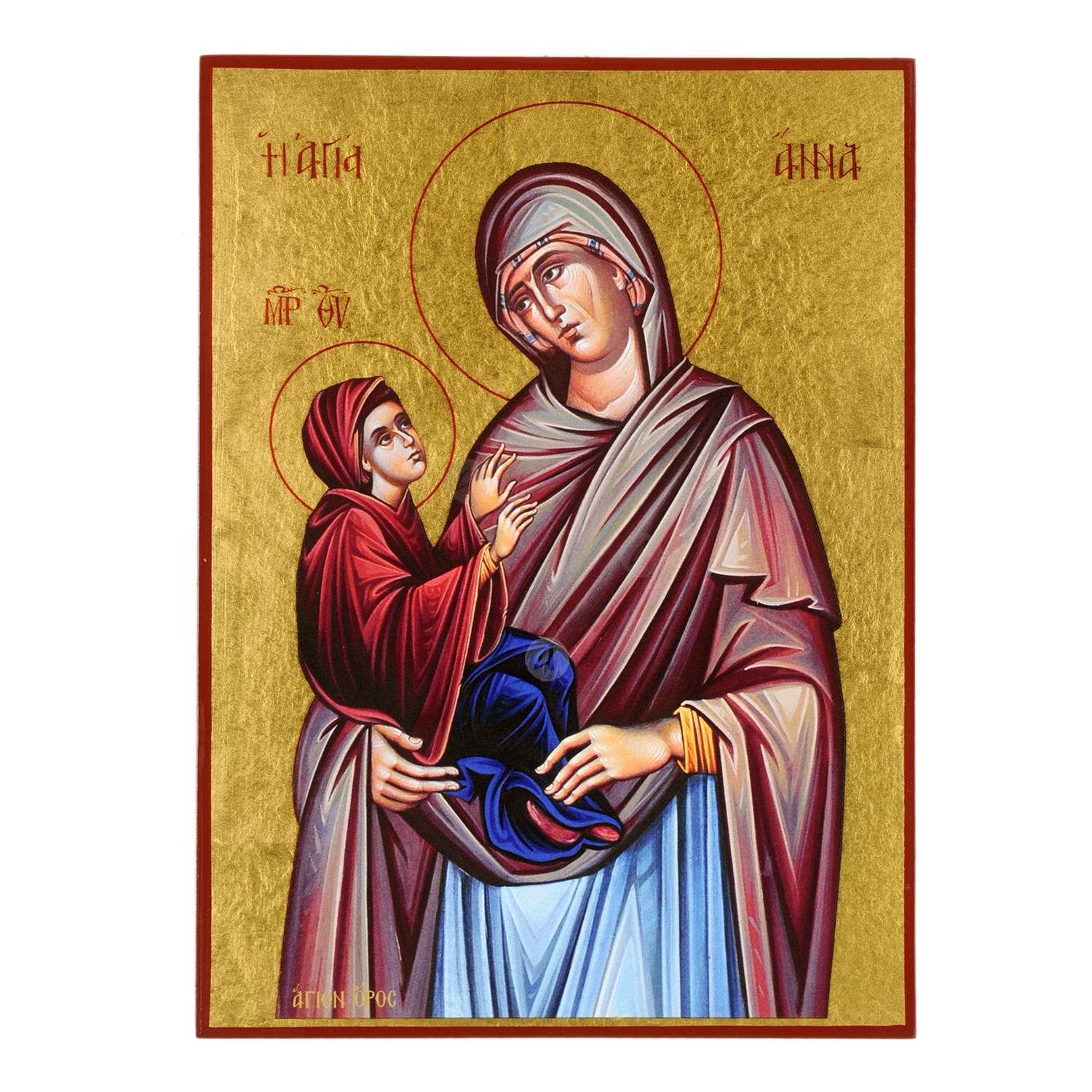 Αγιορείτικη μεταξοτυπία (εικόνα) της Αγίας Άννας σε ξύλο με πραγματικό φύλλο χρυσού.