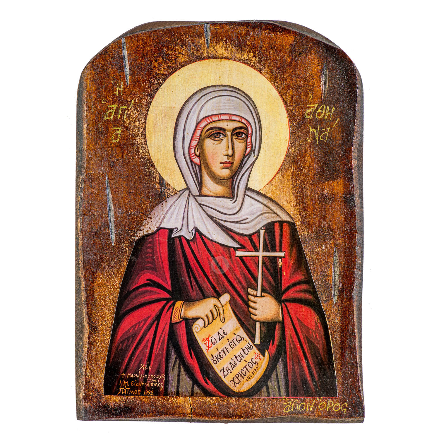 Λιθογραφία (εικόνα) της Αγίας Αθηνάς της Παρθενομάρτυρος παλαιωμένη σε ξύλο πεύκου με τρέσες.