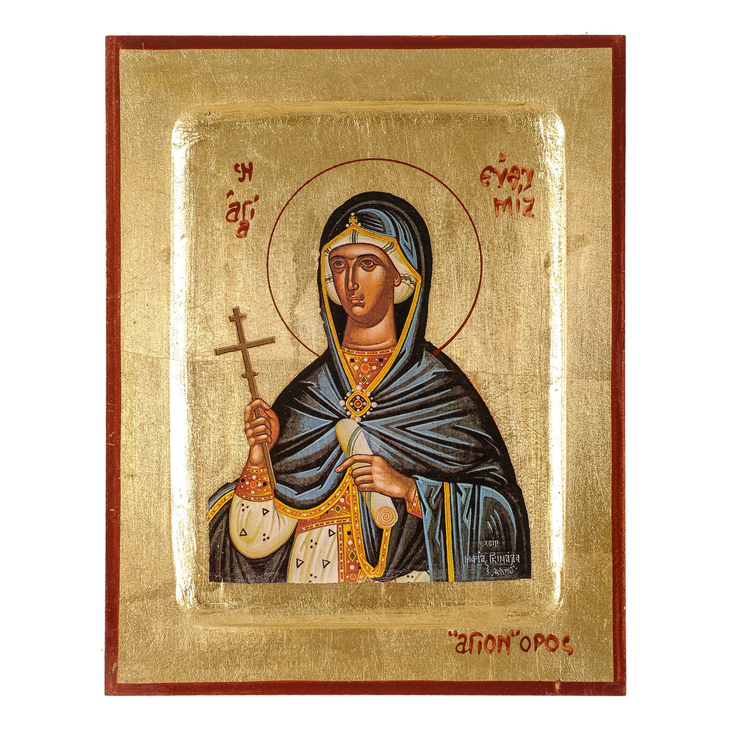Λιθογραφία (εικόνα) της Αγίας Ευθυμίας με πραγματικό φύλλο χρυσού σε MDF.