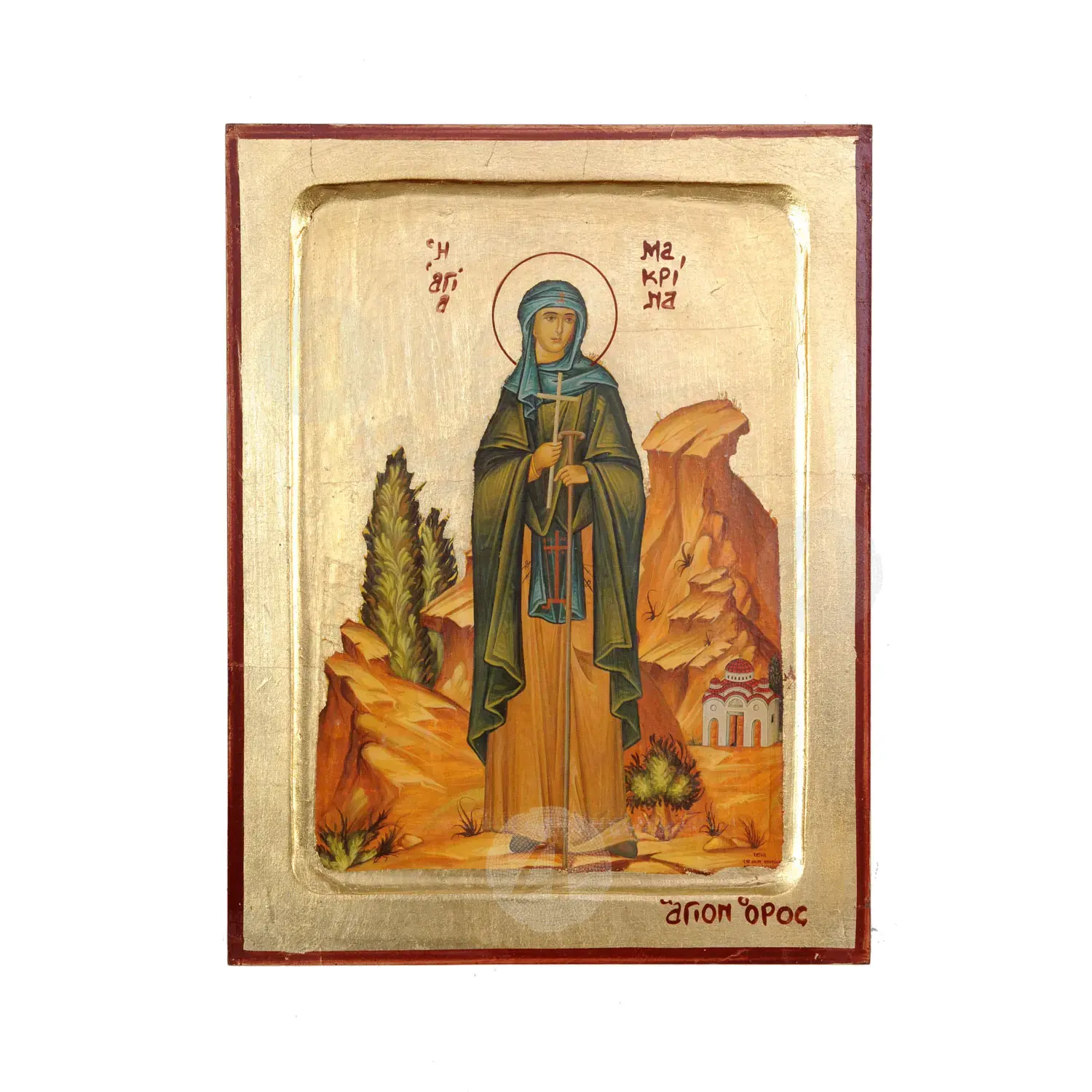 Λιθογραφία (εικόνα) της Αγίας Μακρίνας με πραγματικό φύλλο χρυσού σε MDF.