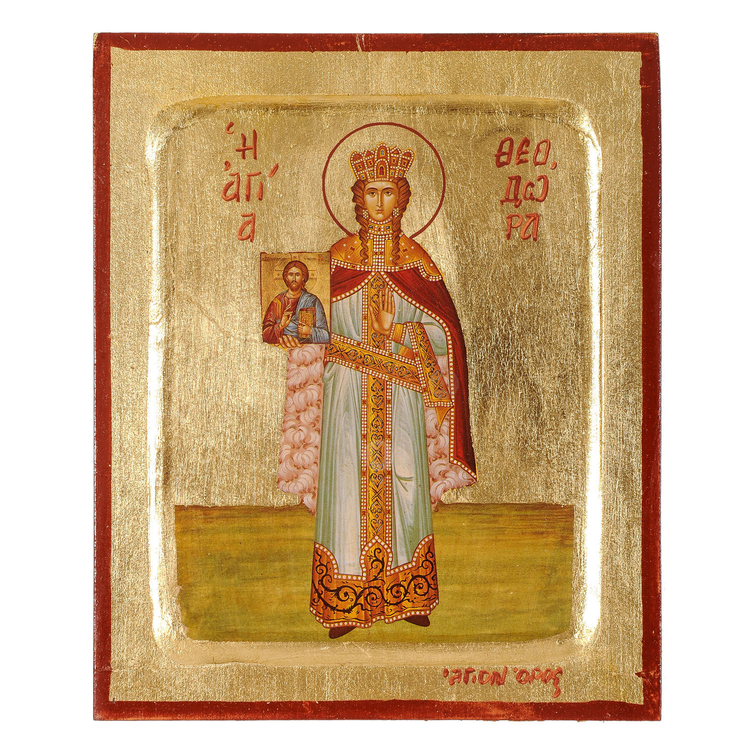 Η Αγία Θεοδώρα η Βασίλισσα γεννήθηκε το 815 μ.Χ. στην Έβεσσα της Παφλαγονίας. Οι γονείς της ήταν ο Μαρίνος και η Θεοκτίστη, οι οποίοι διακρίνονταν για την προσήλωσή τους στην ορθόδοξη χριστιανική πίστη. Το 830 μ.Χ. νυμφεύθηκε τον εικονομάχο αυτοκράτορα Θεόφιλο. Μετά τον θάνατο του συζύγου της, το 842 μ.Χ., ανήλθε στον βασιλικό θρόνο και έδωσε εντολή για την απομάκρυνση του εικονομάχου Πατριάρχου Ιωάννου. Με τις ενέργειές της κατόρθωσε να αναστηλώσει τις Άγιες εικόνες και να καθιερώσει την Κυριακή της Ορθοδοξίας.