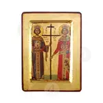 Λιθογραφία (εικόνα) των Αγίων Κωνσταντίνου και Ελένης με πραγματικό φύλλο χρυσού σε MDF.