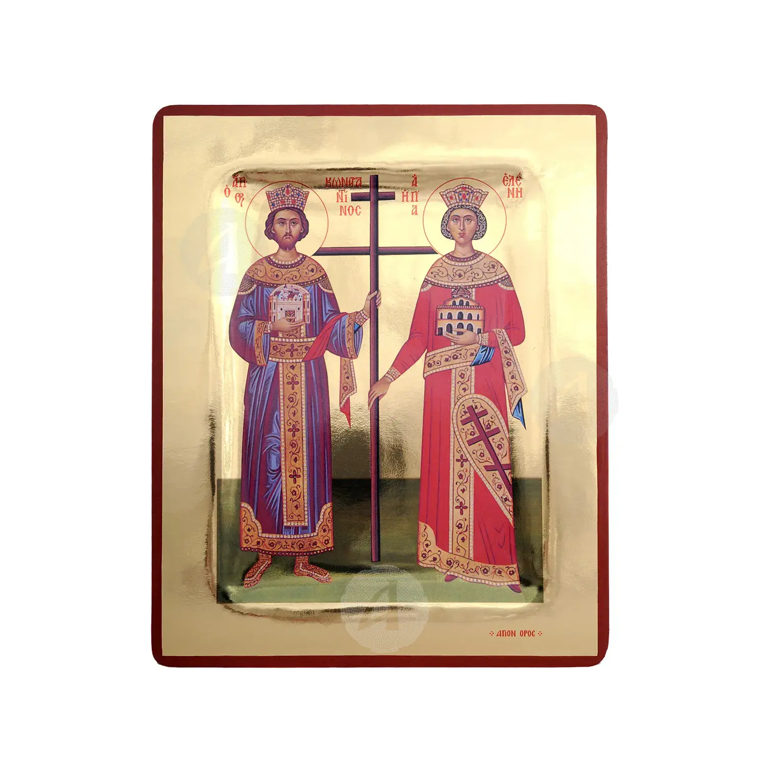 Χρυσοτυπία (εικόνα) των Αγίων Κωνσταντίνου & Ελένης σε ξύλο αγιογραφίας με τρέσες.
