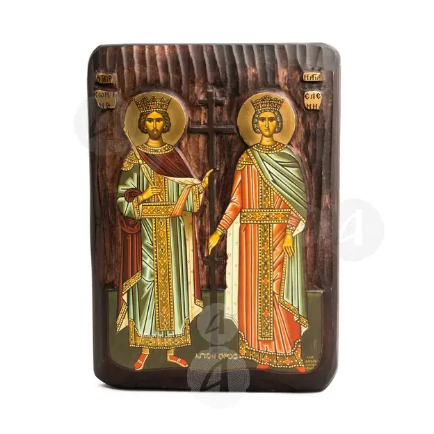 Λιθογραφία (εικόνα) των Αγίων Κωνσταντίνου & Ελένης σε ξύλο σκαλιστό στο χέρι.