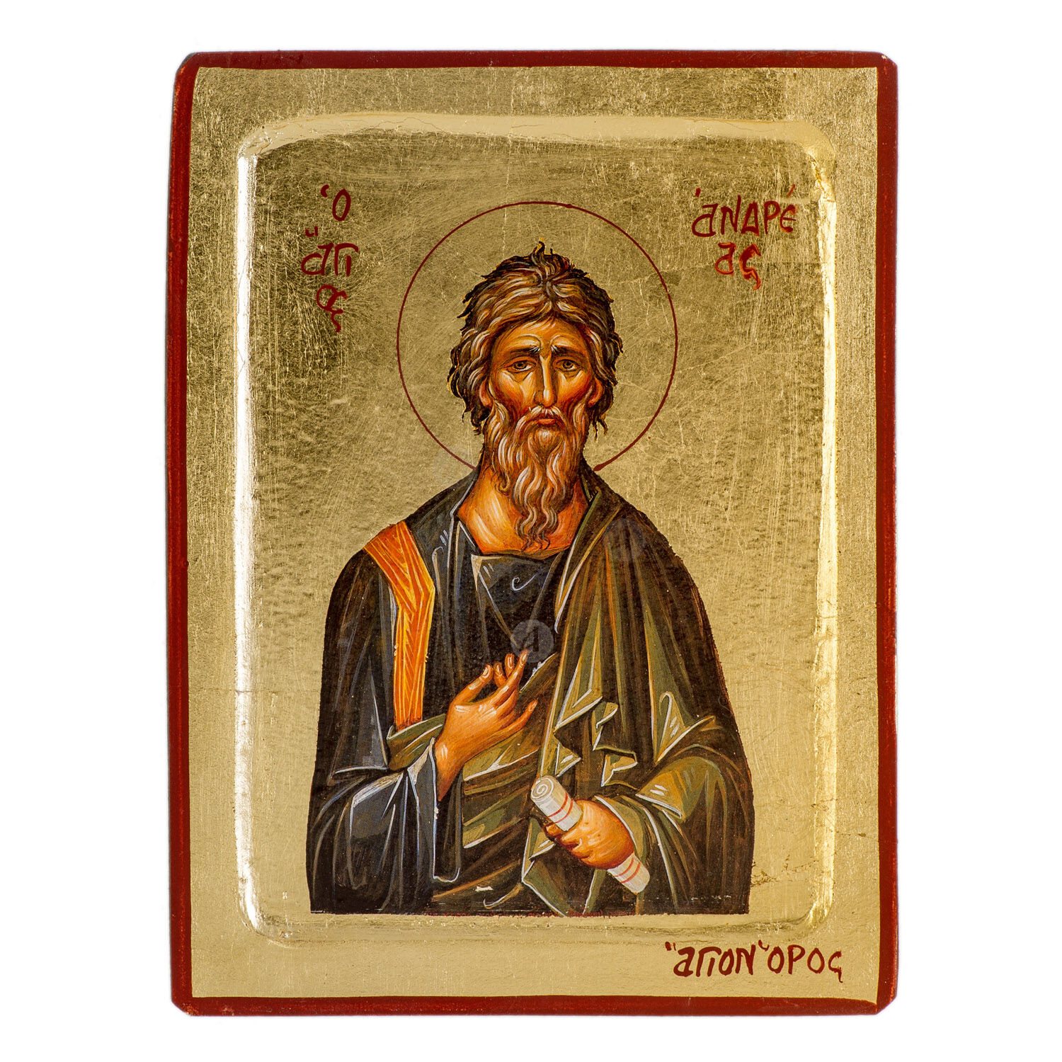 Λιθογραφία (εικόνα) του Αγίου Ανδρέα του Αποστόλου με πραγματικό φύλλο χρυσού σε MDF.