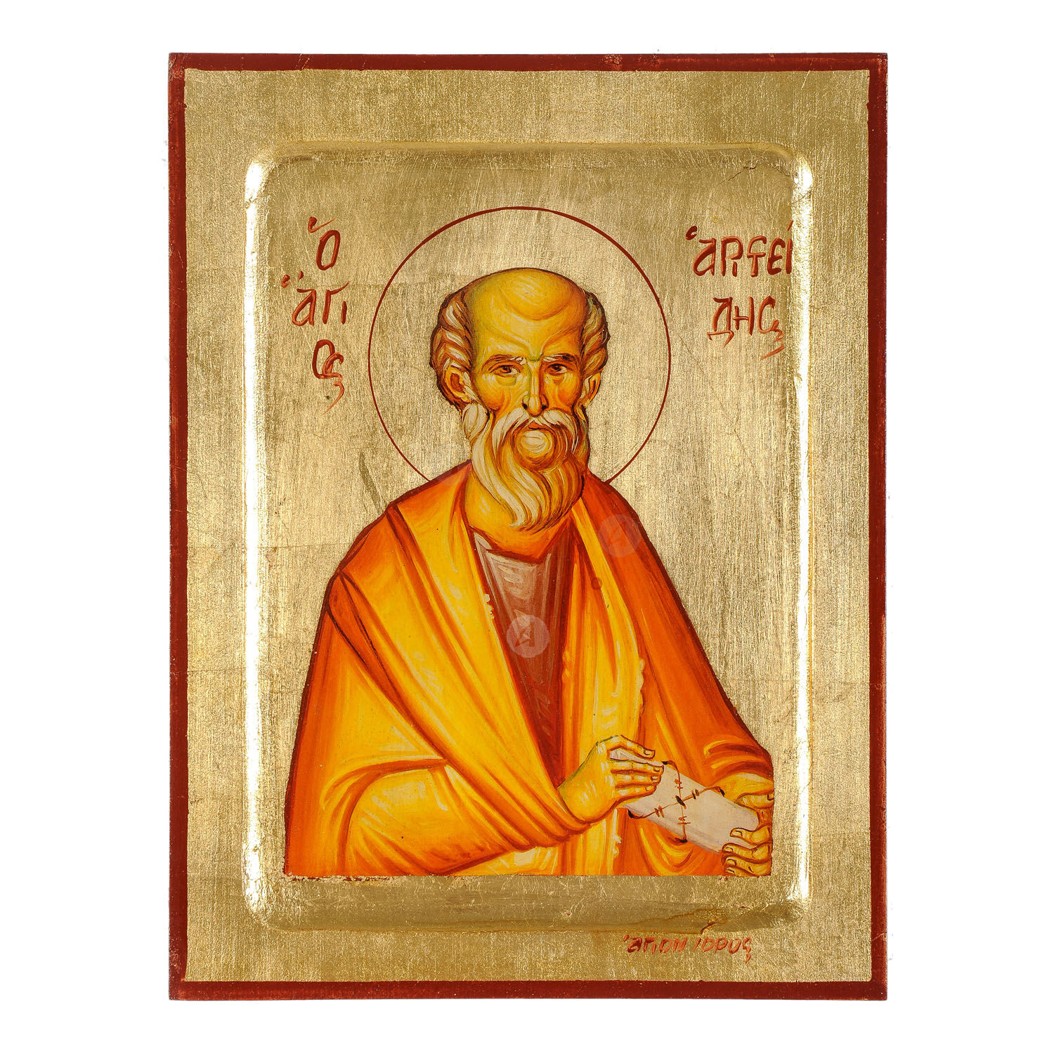 Λιθογραφία (εικόνα) του Αγίου Αριστείδη με πραγματικό φύλλο χρυσού σε MDF.