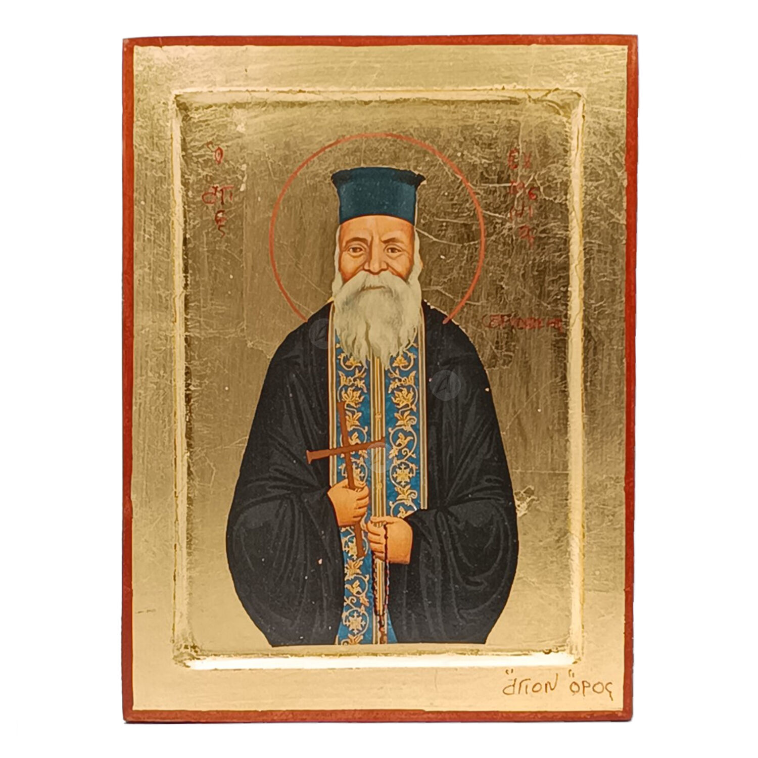 Λιθογραφία (εικόνα) του Αγίου Ευμένιου Σαριδάκη με πραγματικό φύλλο χρυσού σε MDF.