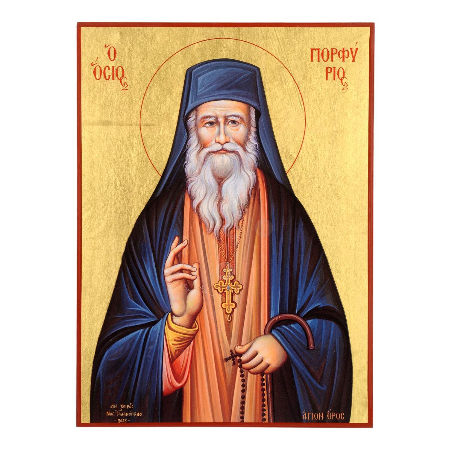 Αγιορείτικη μεταξοτυπία (εικόνα) του Αγίου Πορφυρίου του Καυσοκαλυβίτη σε ξύλο με πραγματικό φύλλο χρυσού.