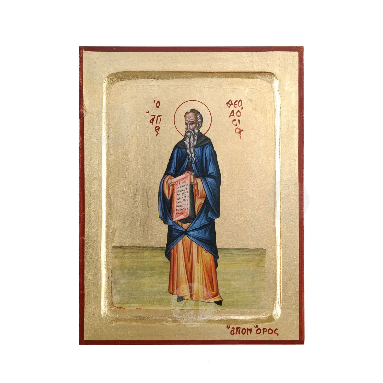 Λιθογραφία (εικόνα) του Αγίου Θεοδοσίου του Κοινοβιάρχου με πραγματικό φύλλο χρυσού σε MDF.