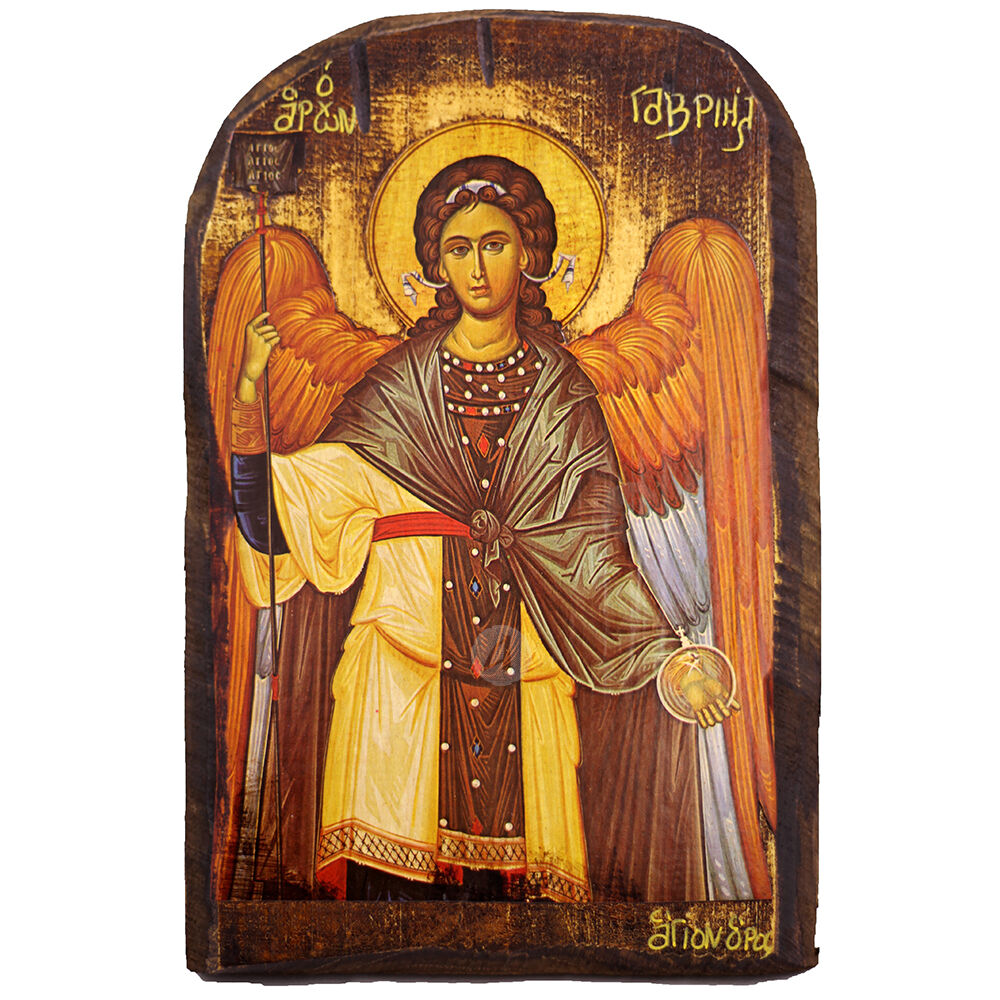 Λιθογραφία (εικόνα) του Αρχαγγέλου Γαβριήλ παλαιωμένη σε ξύλο πεύκου με τρέσες.