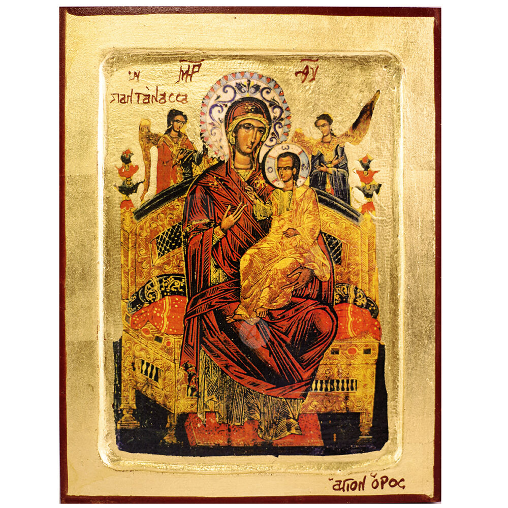 Λιθογραφία (εικόνα) της Παναγίας Παντάνασσας με πραγματικό φύλλο χρυσού σε MDF.