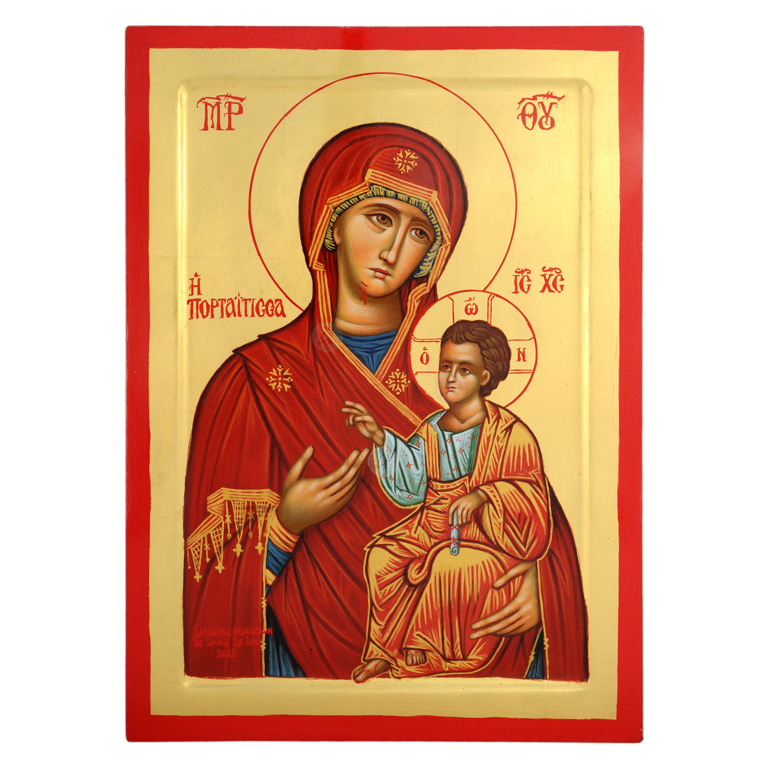 Σύμφωνα με την χριστιανική παράδοση, η εικόνα της Παναγίας της Πορταΐτισσας ανήκε σε μια γυναίκα που ζούσε στη Νίκαια της Μικράς Ασίας. Κατά την διάρκεια της εικονομαχίας και συγκεκριμένα το 829 μ.Χ., η γυναίκα την έριξε στη θάλασσα για να μην πέσει στα χέρια των εικονομάχων. Για 170 χρόνια η τύχη της εικόνας αγνοούνταν. Το 1004 μ.Χ οι μοναχοί της Ιεράς Μονής Ιβήρων είδαν στην θάλασσα ένα φως και με βάρκες πήγαν προς αυτό. Εκεί διέκριναν μια εικόνα, η οποία όμως απομακρυνόταν όσο την πλησίαζαν και οι καλόγεροι επέστρεψαν στη Μονή. Ένας ασκητής, ονόματι Γαβριήλ, άκουσε τότε τη φωνή της Παναγίας να του λέει: «Πήγαινε στο Μοναστήρι σου και πες στον ηγούμενο ότι ήρθα για να τους δώσω την εικόνα μου. Μετά, βάδισε στη θάλασσα, για να γνωρίσουν όλοι την αγάπη και πρόνοια που έχω στο Μοναστήρι σας.» Όπως κι έγινε.
