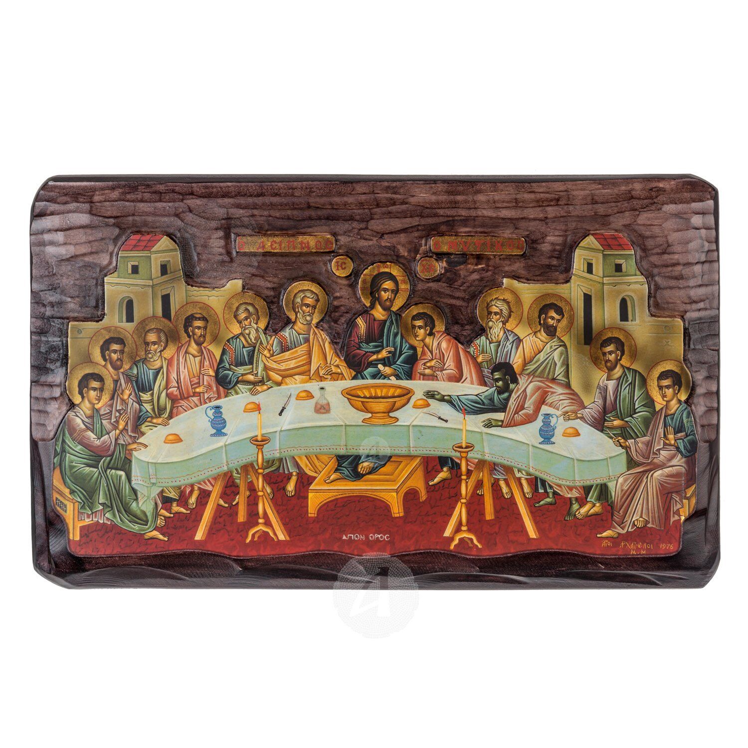Εικόνα του Μυστικού Δείπνου. Λιθογραφία σε φυσικό ξύλο πελεκημένο στο χέρι.