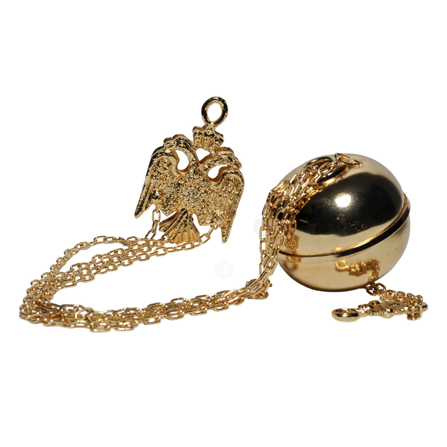 Επιχρυσωμένο αντίβαρο με επίχρυση αλυσίδα κατάλληλο για ναούς αλλά και οικιακή χρήση. Μπορείτε να το προσαρμόσετε στο επιθυμητό βάρος γεμίζοντας το με άμμο ή μεταλλικά ή μολύβδινα σφαιρίδια από την οπή που διαθέτει.