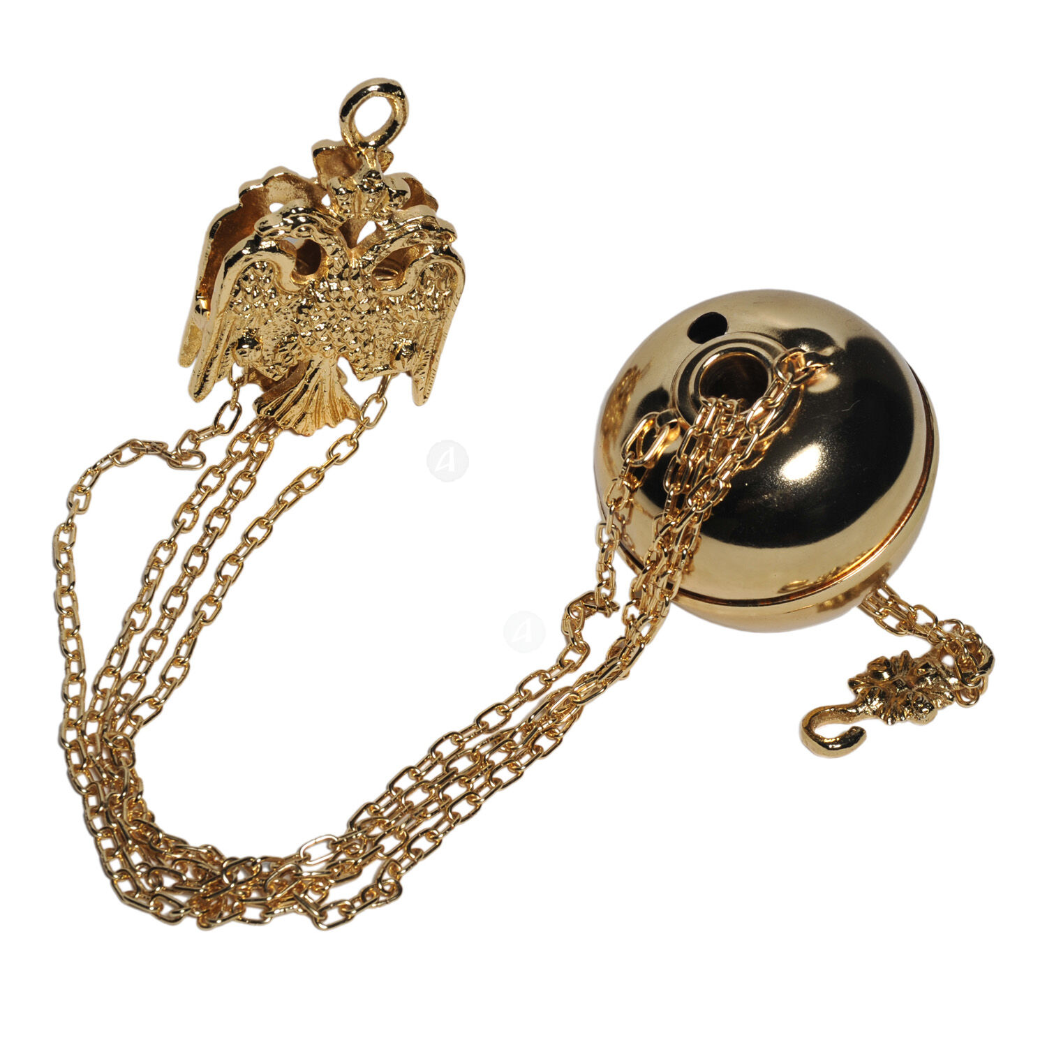 Επιχρυσωμένο αντίβαρο με επίχρυση αλυσίδα κατάλληλο για ναούς αλλά και οικιακή χρήση. Μπορείτε να το προσαρμόσετε στο επιθυμητό βάρος γεμίζοντας το με άμμο ή μεταλλικά ή μολύβδινα σφαιρίδια από την οπή που διαθέτει.