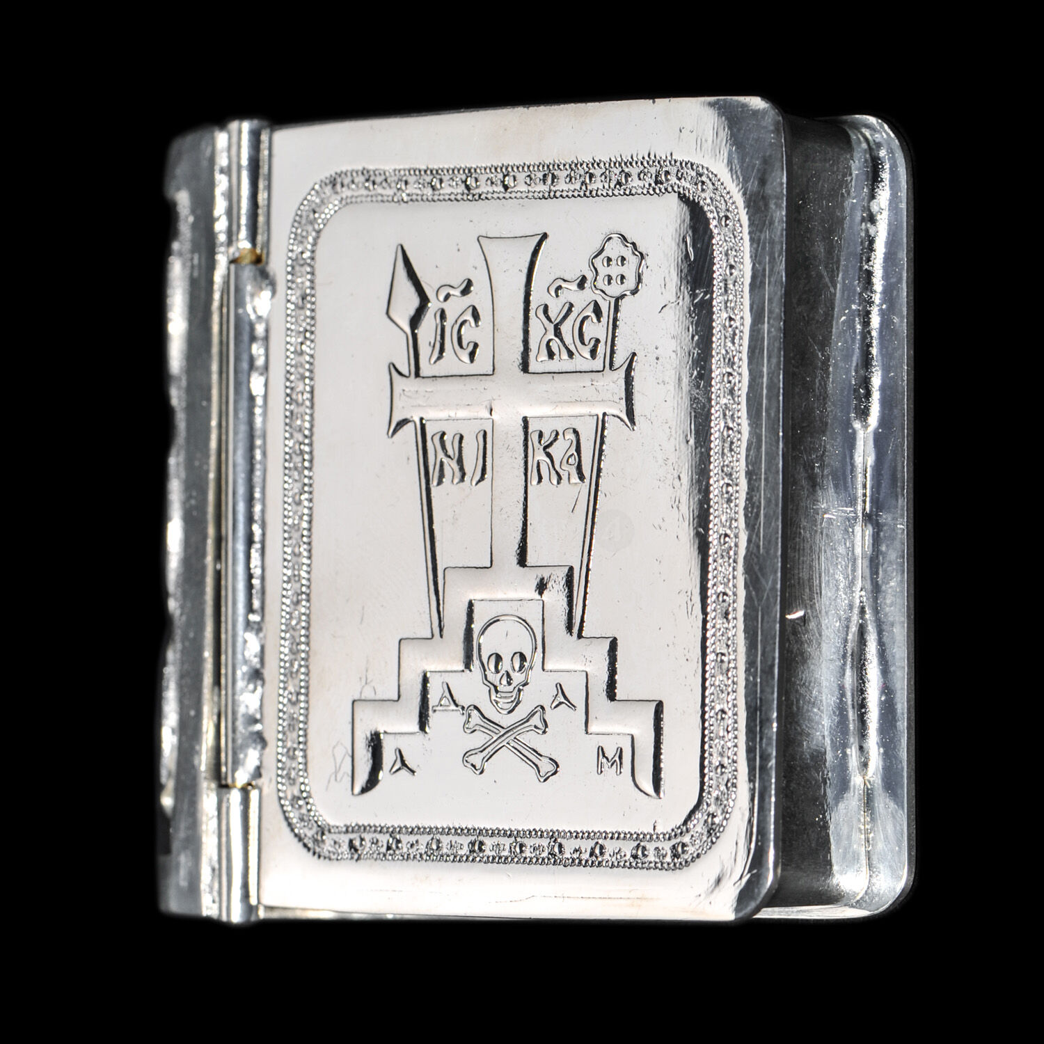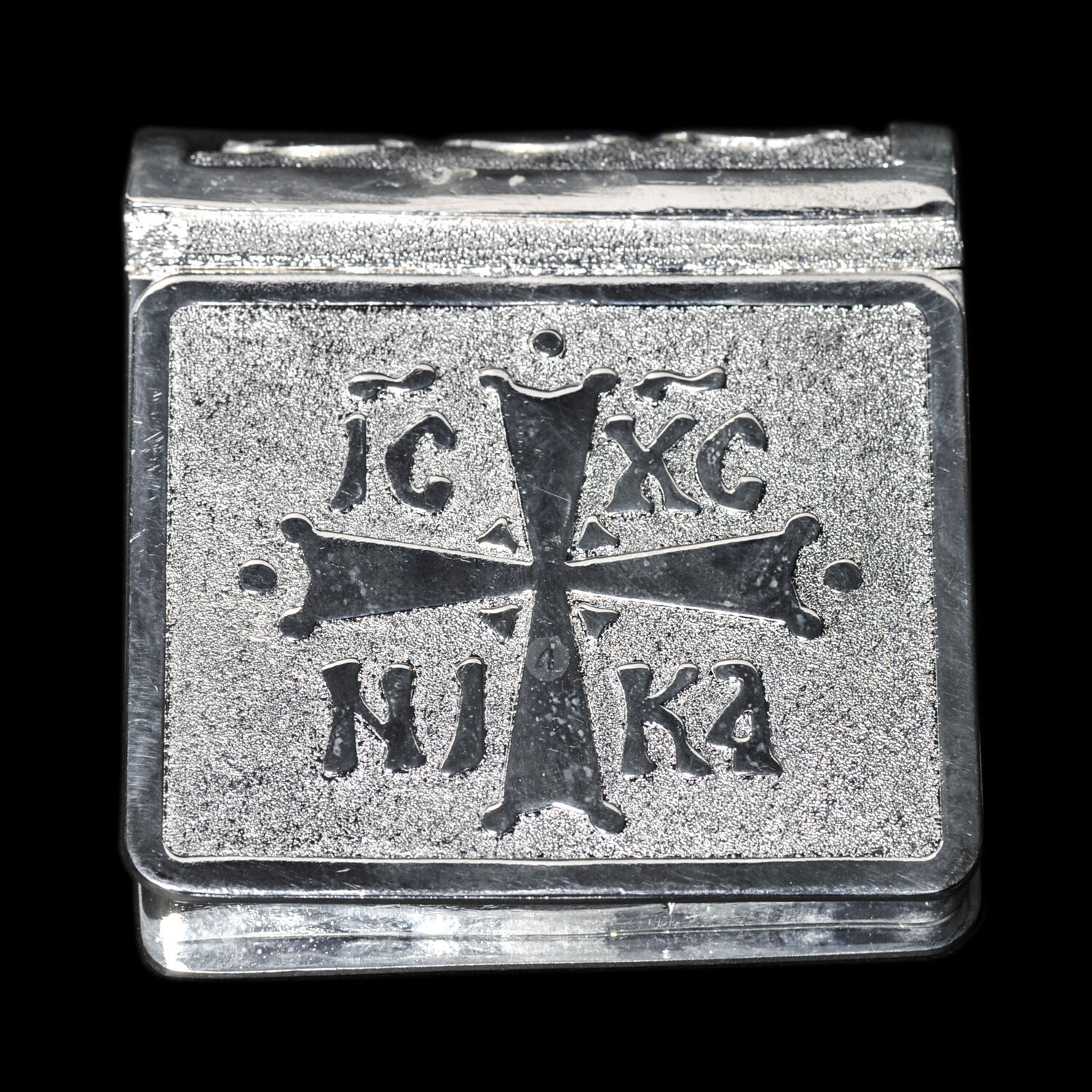 Χειροποίητη ασημένια λειψανοθήκη με την επιγραφή IC XC NIKA.