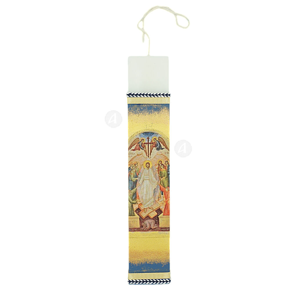 Easter candle of Mount Athos from parrafin with Resurrection of Jesus Christ. Dimensions: length: 37cm.