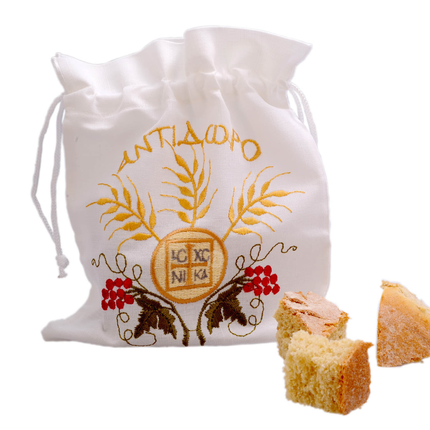 Gold-embroidered bag for Holy Bread Antidoron made of 100% linen fabric.