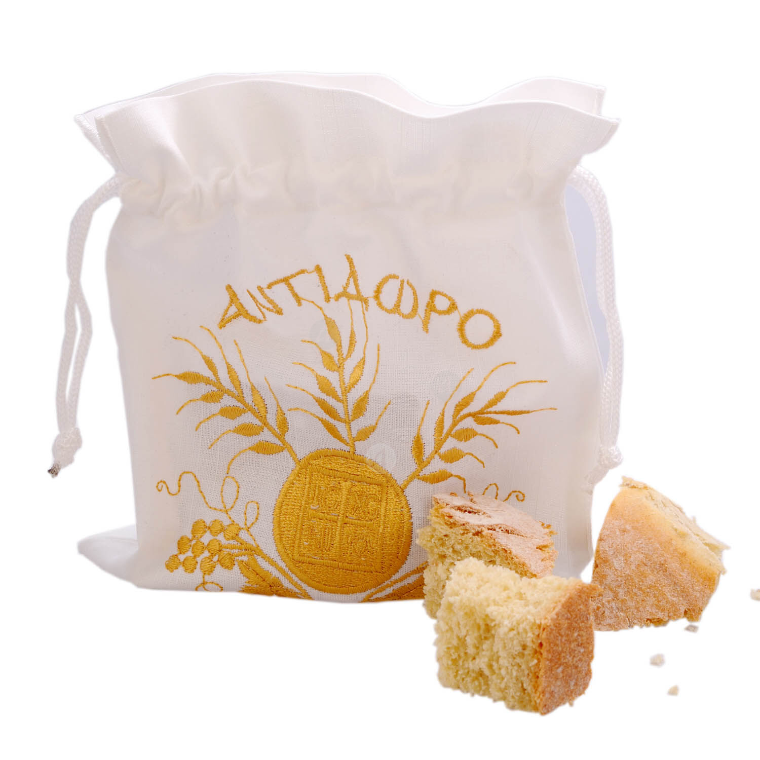 Antidoron is a small piece of blessed and sanctified bread that comes from the Prosphora that the faithful offer to the Church for the performance of the Eucharist. The Antidoron is distributed to those who do not partake of the Holy Gifts of Holy Communion which are the Body and Blood of Jesus Christ.