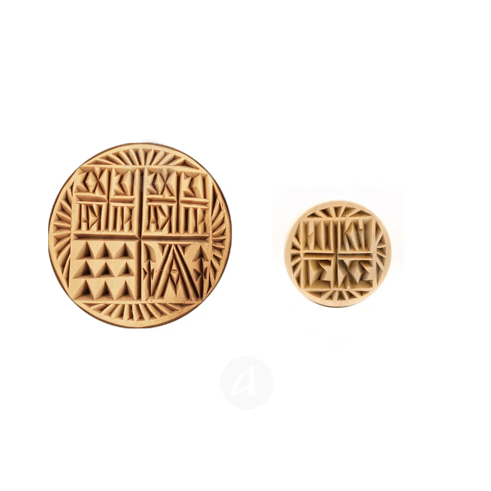 Collection of two pieces of handmade stamps for Holy Bread made of linden tree wood.