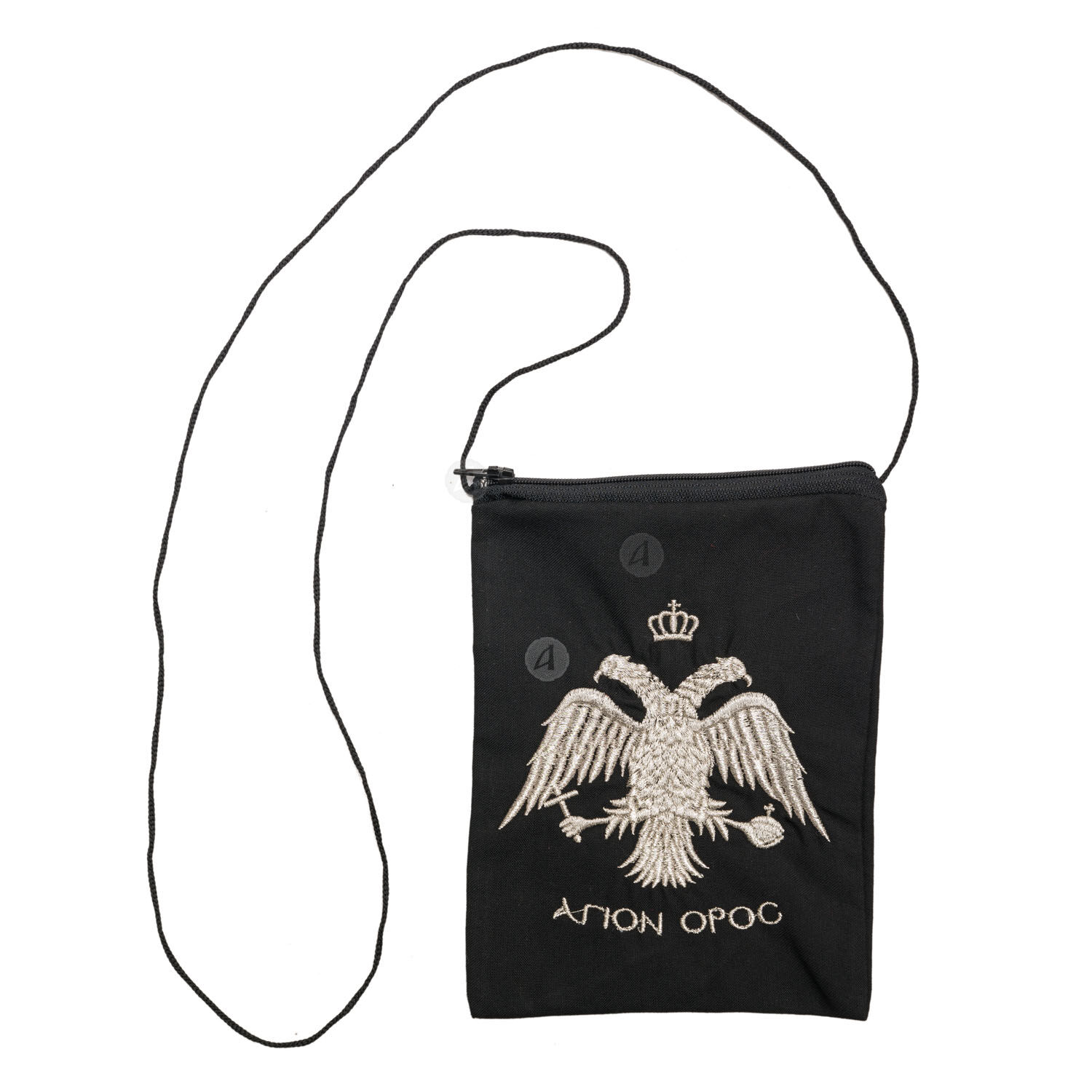 Mount Athos cloth wallet in black color with the Double-headed Eagle.