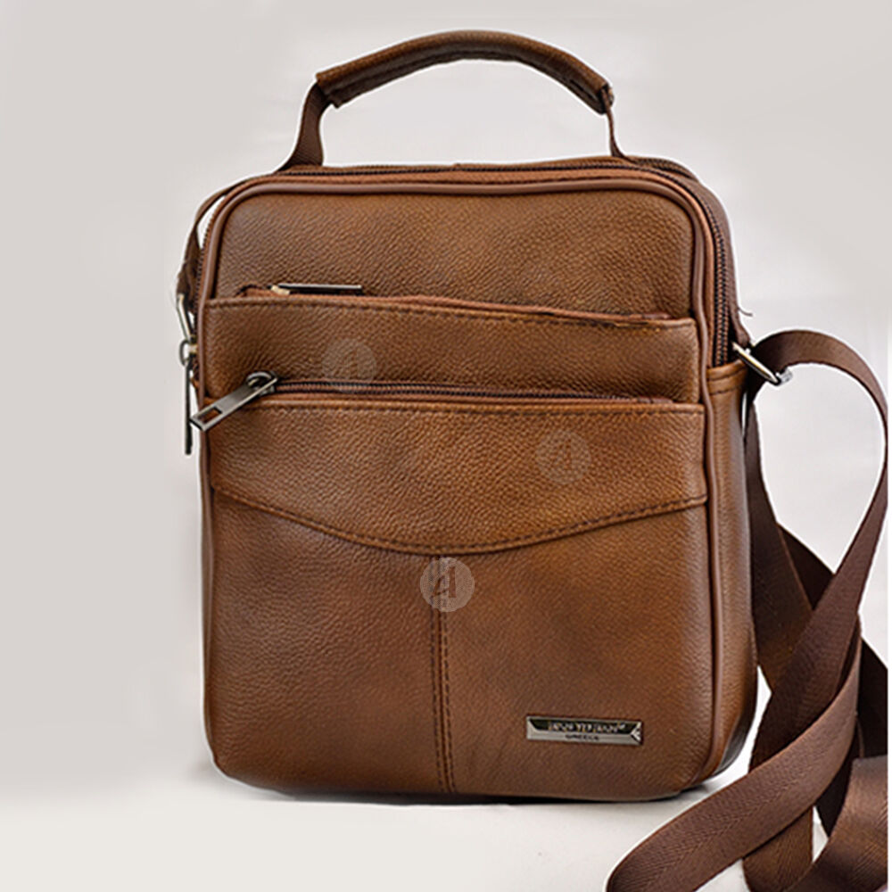 Mount Athos leather bag with 5 pockets and a shoulder strap.