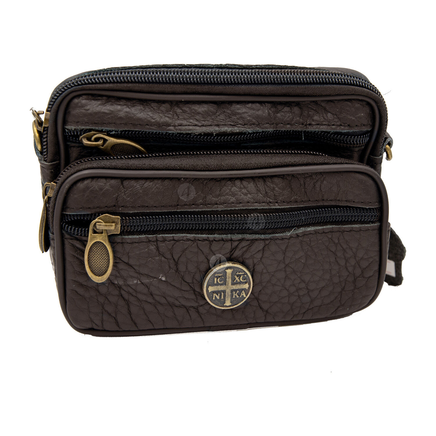 Mount Athos leather bag with 4 big pockets, shoulder strap and a badge IC XC NIKA.