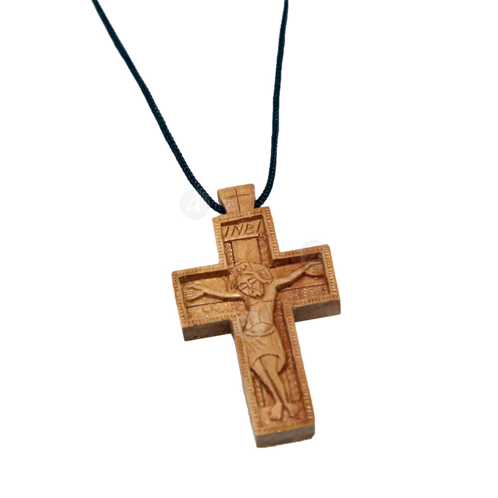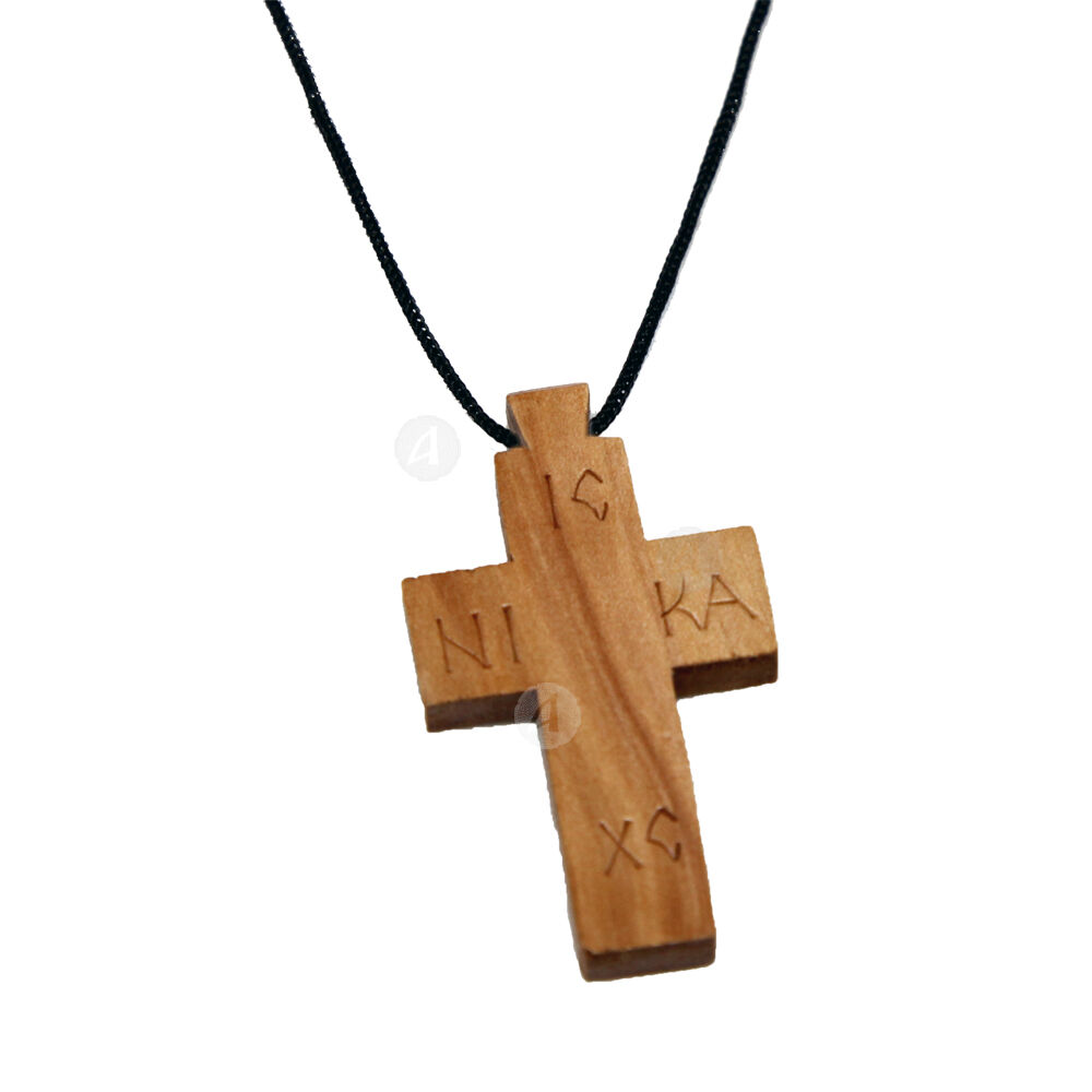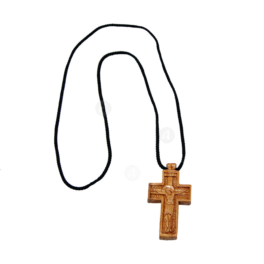 Wood carved necklace cross with the Crucified from Mount Athos.