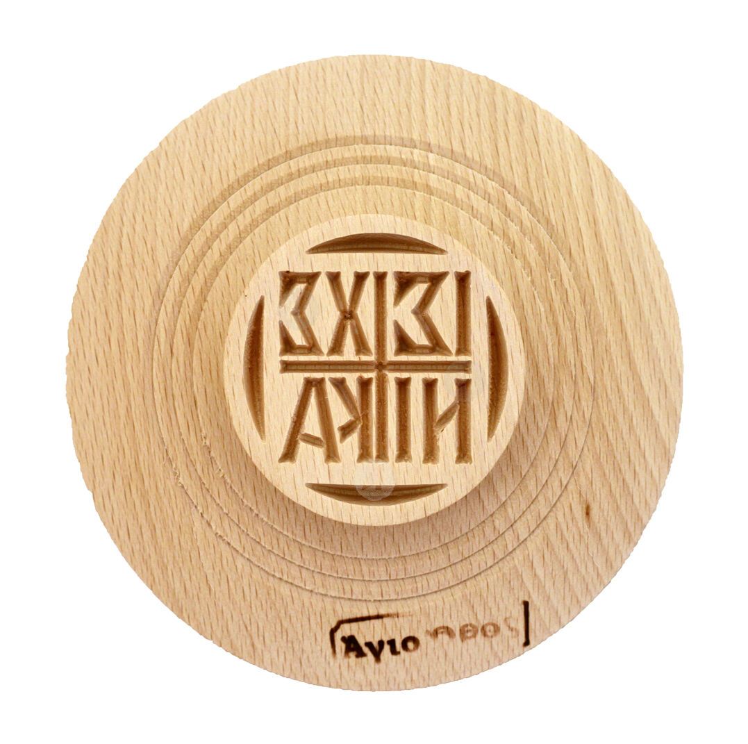 Καλλιτεχνική σφραγίδα πρόσφορου του Αγίου Όρους σε ξύλο οξιάς χαραγμένη από μηχανή