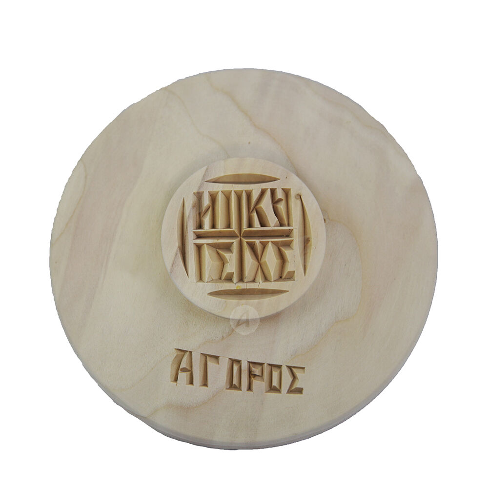 Χειροποίητη σφραγίδα πρόσφορου του Αγίου Όρους από ξύλο φλαμουριάς χαραγμένη με γρανάζι.