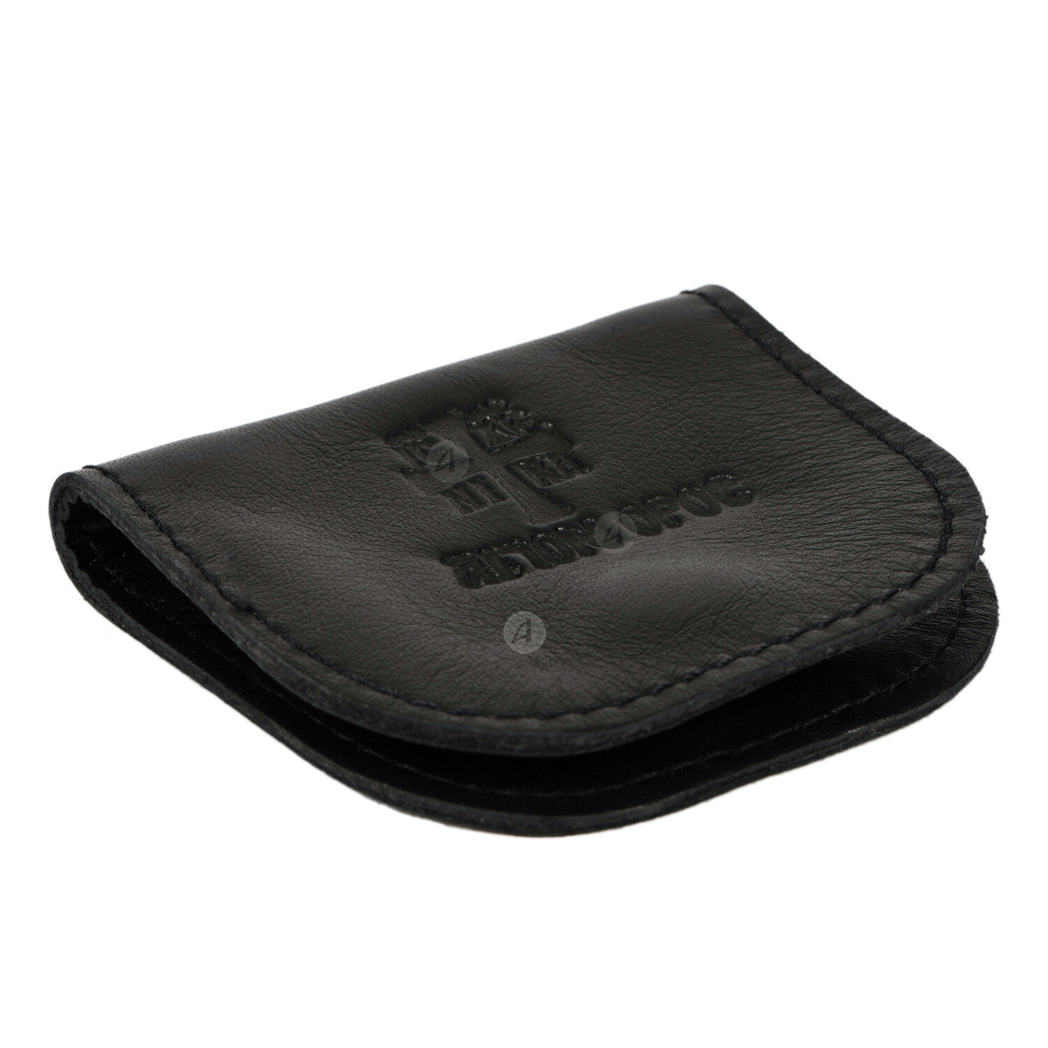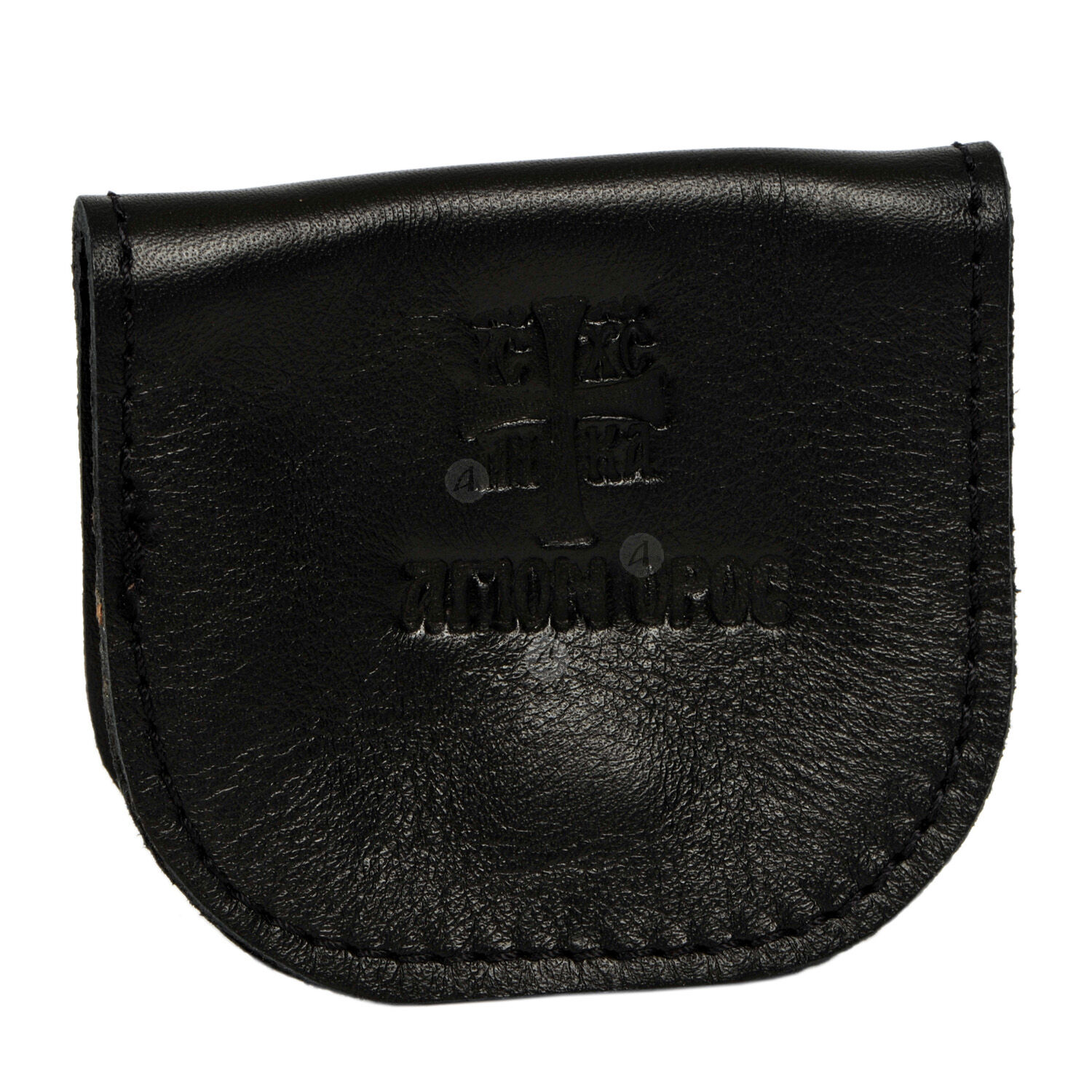 Μαύρο αγιορείτικο δερμάτινο μικρό πορτοφολάκι για κέρματα με σταυρό IC XC NIKA.