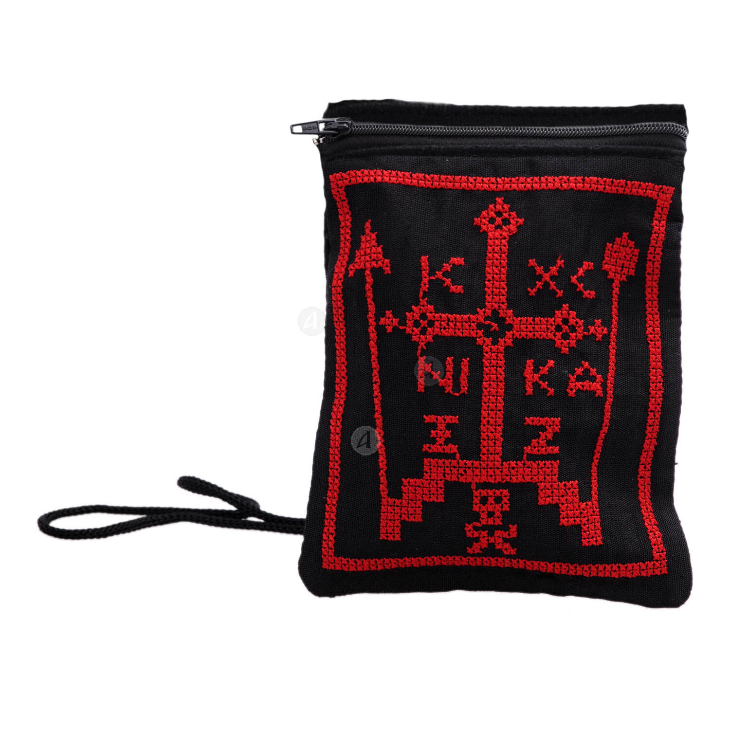 Αγιορείτικο πορτοφολάκι σε μαύρο χρώμα με κέντημα την προσευχή: ΙC.XC.ΝΙΚΑ