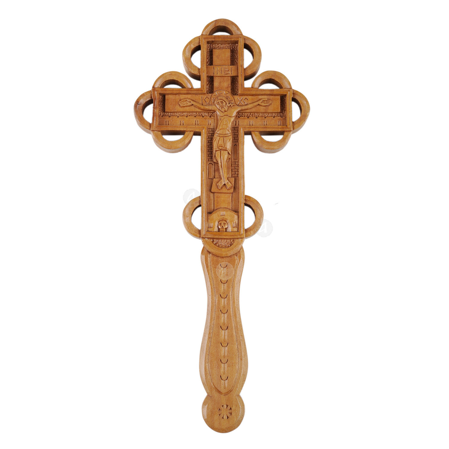 Ξυλόγλυπτος σταυρός αγιασμού (Αγιασματάριο) του Αγίου Όρους με την απεικόνιση του Ιησού Χριστού από την μία πλευρά και της Παναγίας από την άλλη.