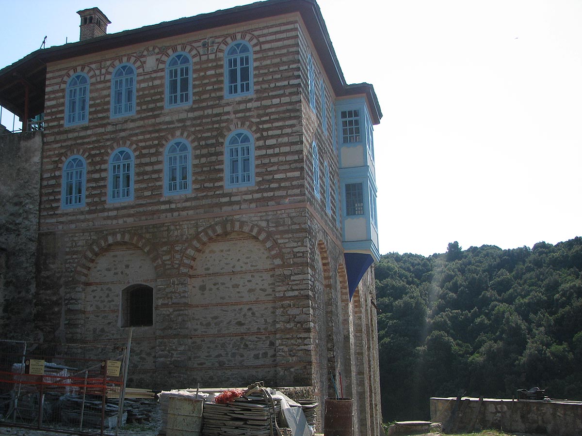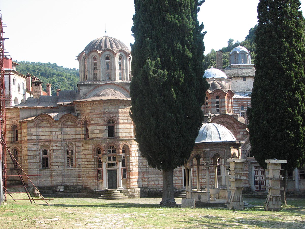 Μεταξύ των πολύτιμων κειμηλίων και αναθημάτων υπάρχουν πέντε πολύτιμες πέτρες με χαρακτηριστικά της Παρθένου, του Χριστού και του Αγίου Δημητρίου, του 12ου αιώνα, και 2 σκαλιστοί ξύλινοι σταυροί που περιέχουν κομμάτια του Τίμιου Σταυρού. Άλλα ανεκτίμητα κειμήλια είναι το σάβανο του Χριστού και κομμάτια από το ακάνθινο στεφάνι, μέρος της πριονισμένης κάρας του προφήτη Ησαΐα, το δεξί πόδι του Αγίου Παντελεήμονα, το δεξί χέρι του Νικηφόρου Πατριάρχη Κων/πόλεως, μέρος των λειψάνων της Αγίας Βαρβάρας και της Αγίας Αικατερίνης. Πολλά από τα κειμήλια δωρίθηκαν από τους Σέρβους βασιλείς και Ρώσους τσάρους. Από τα πιο σημαντικά όμως κειμήλια της Μονής είναι η θαυματουργός εικόνα της Θεοτόκου της ‘Τριχερούσας’ με επίχρυση επένδυση και με διάφορα αρχαία νομίσματα μεταξύ των οποίων διακρίνονται και εκείνα του Μ. Αλεξάνδρου. Υπάρχουν ακόμη θαυματουργές εικόνες της Θεοτόκου: της ‘Γαλακτοτροφούσης’, της ‘τον εκκλησιάρχη παιδευσάσης’, της ‘μη καείσης’ στη μεγάλη πυρκαγιά του 1722, του ‘Ακάθιστου’ και της σερβικής ‘Παπάδικης’ (Πόπσκαγια).