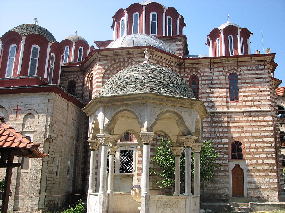 Το Καθολικό χτίστηκε και αγιογραφήθηκε στα 1806-1810 και εγκαινιάσθηκε από το 1811 από το Γρηγόριο. Το 1817 το ιερό αγιογραφήθηκε από τους ζωγράφους Ζαχαρία, Βενιαμίν και Μακάριο ενώ το 1841 οι τοίχοι και η οροφή του νάρθηκα από τους ζωγράφους Γεράσιμο, Άνθιμο, Ιωάσαφ και Νικηφόρο. Η Τράπεζα ανακαινίστηκε το 1810 και τοιχογραφήθηκε με έξοδα του ηγούμενου Ευθυμίου αλλά το μεγαλύτερο μέρος των τοιχογραφιών καταστράφηκε από τις φωτιές των Τούρκων στρατιωτών το 1821. Η Φιάλη κατασκευάστηκε το 1815 από τον ηγούμενο Ευθύμιο Ε’ στη θέση της βυζαντινής φιάλης. Στη Μονή υπάρχουν 8 παρεκκλήσια και από τα 5 που βρίσκονται έξω από τα τείχη της ιδιαίτερα σημαντική είναι η μικρή εκκλησία αφιερωμένη στον Αντώνιο Πετσέρσκι. Επίσης διαθέτει 3 Καθίσματα και 2 Κελιά.