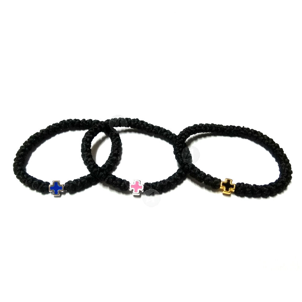 Μεταξωτό αγιορείτικο κομποσκοίνι σε μαύρο χρώμα με 40 κόμπους και μεταλλικό σταυρό σε διάφορα χρώματα.