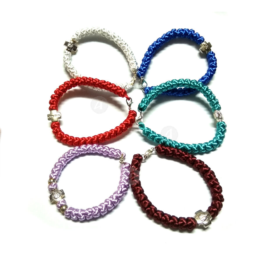 Αγιορείτικο κομποσκοίνι 33 κόμπων από σατέν σε διάφορα χρώματα με κούμπωμα και ασημί σταυρό.