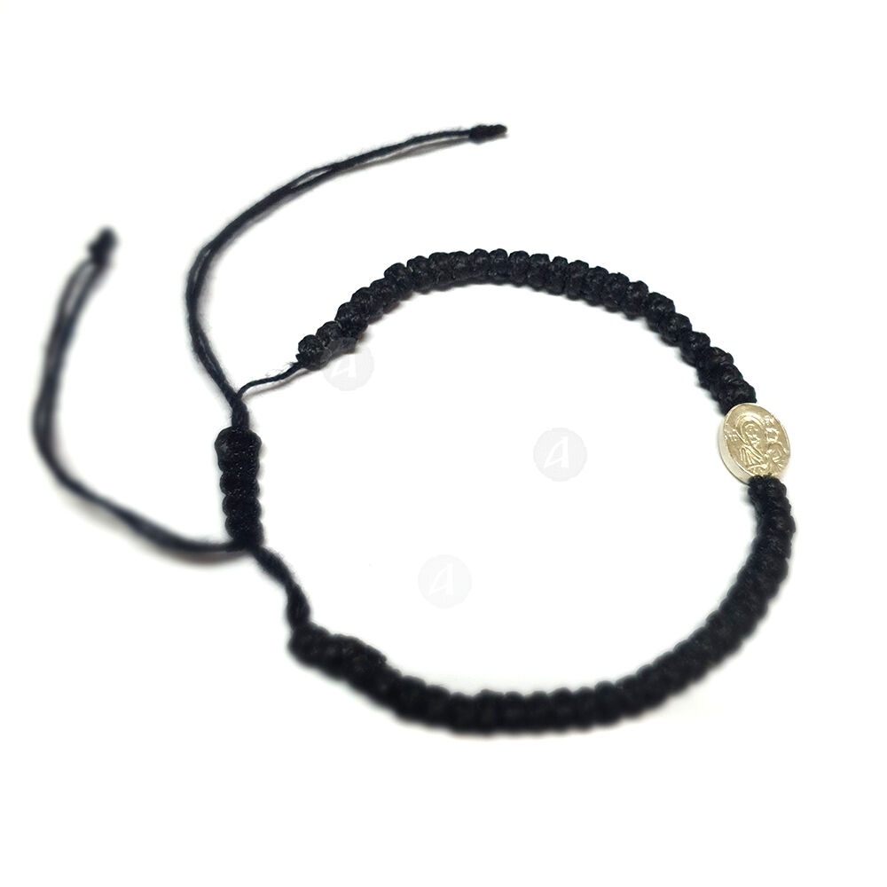 Λεπτόκομπο κερωμένο κομποσχοίνι με χειροποίητη ασημένια εγχάρακτη Παναγία 925° από μεταξωτό νήμα και δυνατότητα προσαρμογής μήκους.