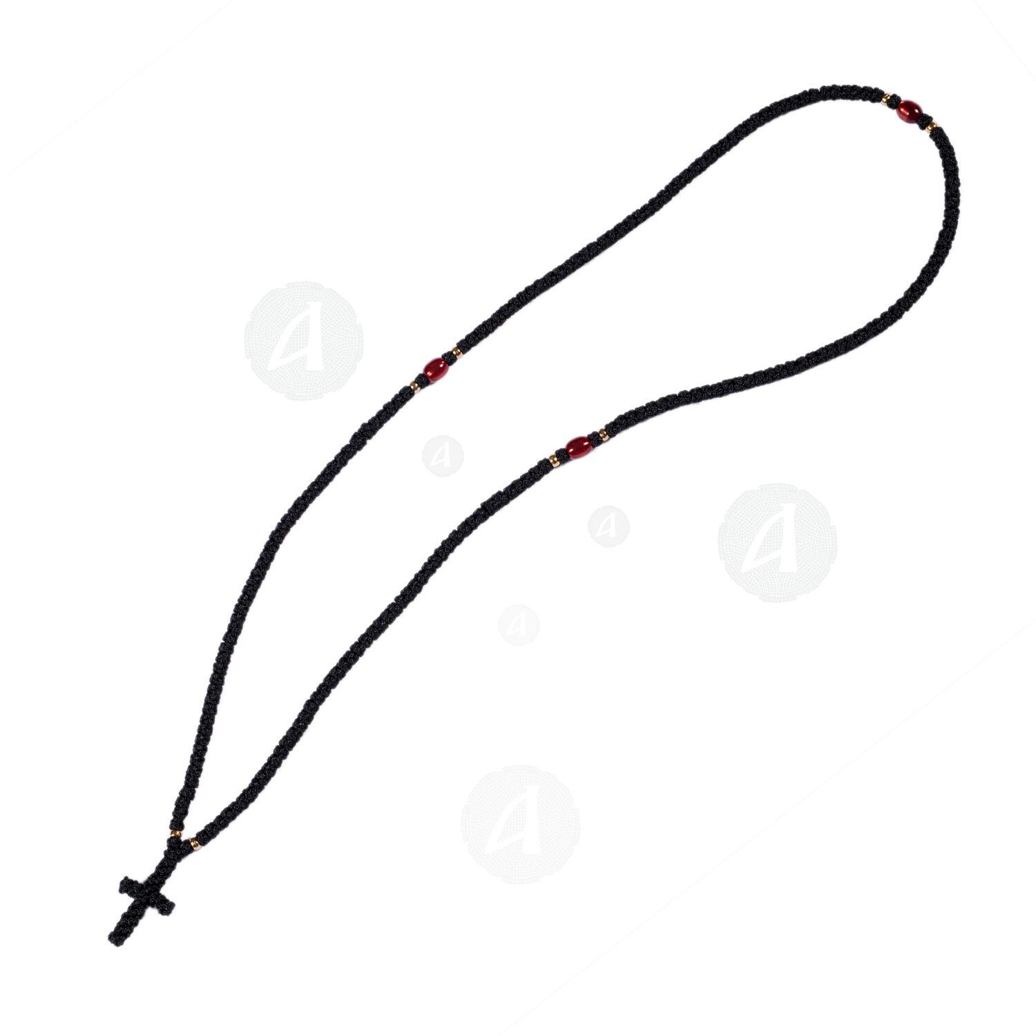 Αγιορείτικο μαύρο κομποσκοίνι 200 κόμπων από μεταξωτό νήμα, με χάντρες σε διάφορα χρώματα.