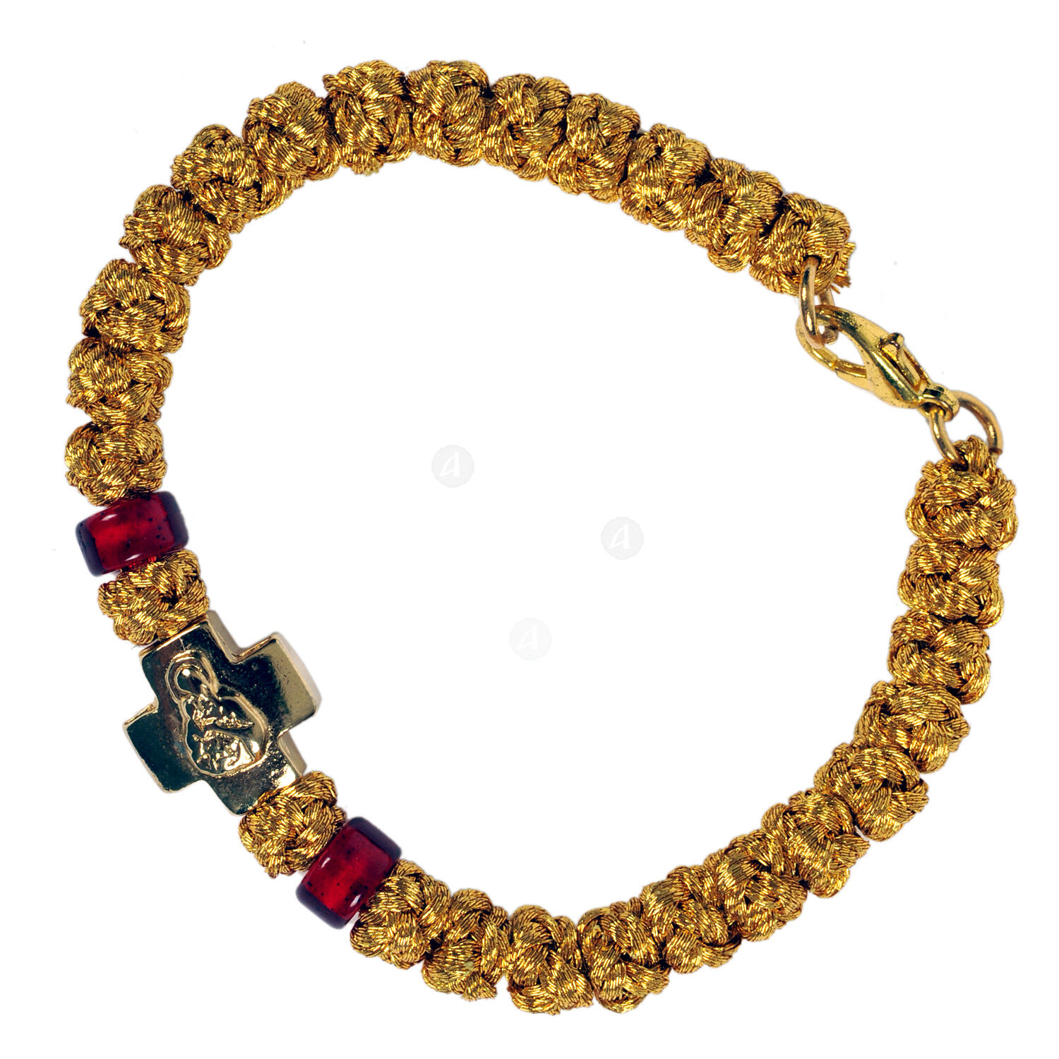 Κομποσκοίνι Αγίου Όρους 33 κόμπων από χρυσοκλωστή, με κόκκινες χάντρες και χρυσαφί σταυρό.